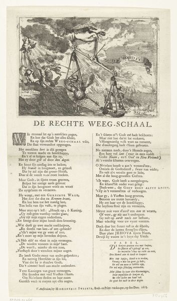 Dirk Wijbrand Tollenaar created this print, “New Year's Wish from the Amsterdam Night Watch for the Year 1835,” using etching, a popular printmaking technique. Consider the historical context: the Netherlands in the early 19th century, still a monarchy finding its footing after French occupation. The print depicts members of the Amsterdam night watch—a kind of citizen militia—in front of city buildings. But this isn't just a depiction of civic duty; it’s a bid for recognition and perhaps even respect. The poem inscribed below the image addresses the "Lords, Merchants, Citizens, and Inhabitants" of Amsterdam, wishing them well for the new year. In a time of social change and economic uncertainty, the night watch sought to align themselves with the interests of the city’s elite. The print becomes a performative gesture, a public display of loyalty and service aimed at reinforcing their position within the social order. It makes me think about who gets remembered in history, and the complex relationship between power, representation, and self-preservation.