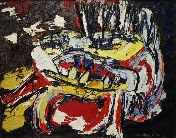 Editor: Here we have Terry Setch's large-scale painting, "Once upon a Time there was Oil III, Panel I." The chaotic brushstrokes and muted palette create a really unsettling mood. What do you see in this piece? Curator: I see an urgent commentary on environmental degradation. Given Setch's Welsh background, consider the impact of the oil industry on working-class communities and the landscape. Do you see the figures as victims or perpetrators within this narrative? Editor: I guess I hadn’t considered that perspective, but I see what you mean about his background influencing the work. Curator: Exactly. The personal is political, and art like this invites us to critically examine power structures and their consequences. Perhaps the "Once upon a Time" implies a lost innocence. Editor: That’s a powerful way to look at it. I’ll never see this painting the same way again. Curator: That’s the point, isn’t it? To challenge our assumptions and broaden our understanding.