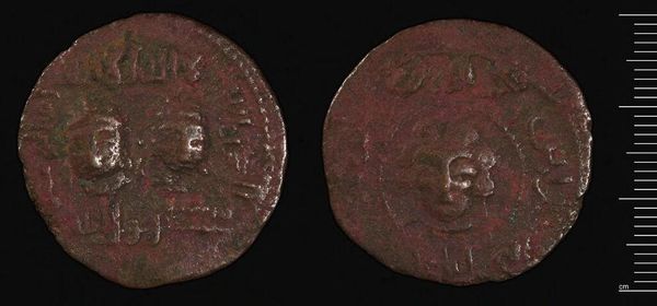 Curator: This is a coin of Justinian I, the Byzantine emperor who reigned from 527 to 565 AD. It weighs just over 21 grams. Editor: It's remarkably eroded, isn’t it? The patinated surface and worn edges give it an almost melancholic feel. Curator: Indeed, but the wear is testament to its circulation through history. Coinage during Justinian’s reign was crucial to the empire’s economy and military campaigns. Editor: The front features a bust of Justinian, though time has blurred the details. On the reverse, we see a large "M," indicating its denomination as a 40 nummi piece. Curator: The coin embodies Justinian’s efforts to centralize power and standardize currency. These coins facilitated trade and tax collection, bolstering the imperial treasury. Editor: The bas-relief is simple, yet there's a certain elegance in the lettering and the way the designs fill the circular space. Curator: It's a tangible connection to a pivotal era. Seeing the coin now, we are reminded that even the smallest object can signify considerable power. Editor: Agreed. The details are amazing; it evokes a visceral sense of its past.