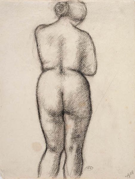 Vilhelm Lundstrom made this sketch of a standing female model with ink on paper. It’s all about the lines here, folks, scribbled and scratched into the surface, like the artist was trying to capture a fleeting thought. There’s a real energy in the marks, especially around the figure's contours. You can almost feel the artist circling around the form, trying to pin it down. Look at how the lines vary in thickness, some bold and assertive, others thin and tentative, creating a sense of depth and volume. It's like the artist is thinking through the act of drawing, letting the process guide the way. This kind of raw, expressive mark-making reminds me of Egon Schiele. Both artists aren’t afraid to leave the process visible, to show the struggle and the searching, as if the art is a snapshot of their consciousness. We’re not looking at a polished product, but an open-ended question.