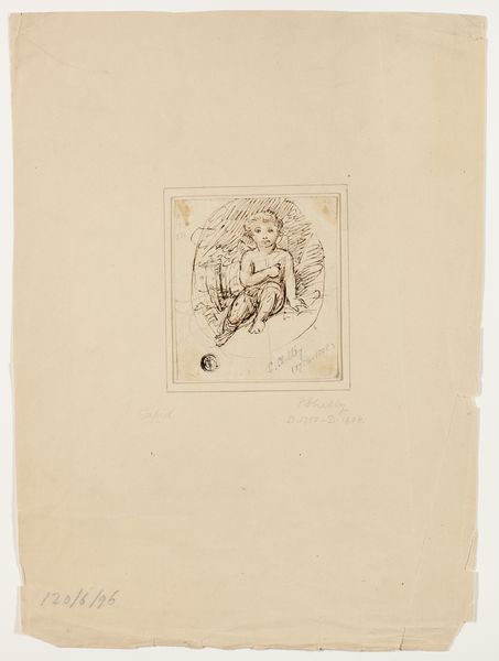 Curator: Here we have Charles Onghena’s "H. Sebastiaan" created in 1834. It’s a pen and ink drawing on paper depicting Saint Sebastian. What’s your initial read of this work? Editor: There’s a certain fragility to it, a quiet desperation in the very delicate linework. It's as though the artist captured a fleeting moment of human vulnerability. It is in black and white—which gives a melancholic feel. Curator: It's interesting you mention the linework because Onghena was quite skilled, trained within academic circles emphasizing draftsmanship as foundational. This image participates in a longer history of artistic interpretations of Saint Sebastian. Editor: It raises the question of why an artist would choose pen and ink for such a monumental theme? Is it about accessibility of materials? The quickness of the medium, offering a rapid dissemination of this imagery? Curator: Exactly. Print culture was booming. The relatively easy reproducibility of ink drawings meant images circulated widely, shaping public perception and contributing to religious and historical narratives. These works had real social and political impact. Editor: And look how the lines define the saint's form, seemingly vulnerable, yet imbued with resilience. I'm curious, what was Onghena's involvement in the art world and its institutions at the time? Curator: Onghena was part of a generation navigating Romanticism and nascent Realism. His choice of subject matter aligns with the period's interest in history painting and religious iconography, although his technique leans toward a more intimate, personal expression rather than grand academic style. Editor: And the consumption of art has obviously shifted. Now we see it on screens; a far cry from the devotional function these images originally held, impacting our emotional experience today. Thank you for providing this insight. Curator: Yes, thinking about its role within religious instruction, influencing moral conduct and shaping societal norms makes you think twice. I think this really encapsulates the romantic and religious fervour of its time.