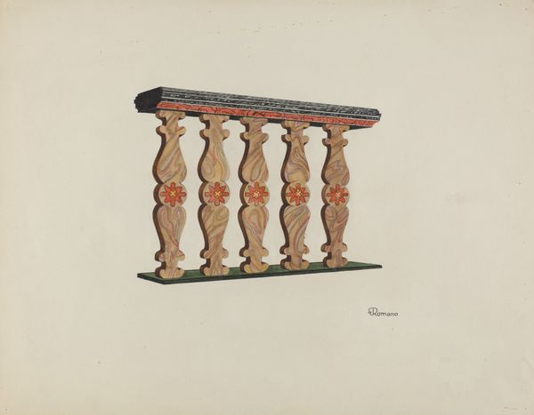 Albert Pratt rendered this watercolor, “Choir Rail,” sometime between 1885 and 1995. Pratt was an African American artist working at a time when racial and economic barriers often limited opportunities for Black artists. This image, part of a broader collection documenting architectural elements, offers a glimpse into the spaces inhabited and shaped by African American communities. The choir rail, with its stylized floral inlays, evokes a sense of both the sacred and the everyday. It marks the intersection of faith, community, and artistic expression, bearing witness to the cultural practices and spiritual lives of its users. Consider how Pratt’s artistic choices, like the attention to detail in the wood grain and the warm color palette, invite contemplation and reverence, while also highlighting the skill and creativity inherent in vernacular design. The choir rail isn't just a structural element; it's a symbol of collective identity and shared history.