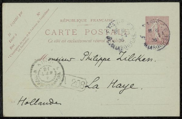 This is the back of a postcard, addressed by Jean de Foville to Philip Zilcken, bearing a French postage stamp. Note the figure on the stamp. She stands, draped, scattering seeds – an allegory of France herself. She's a modern echo of classical depictions of Ceres, the Roman goddess of agriculture, or perhaps an antique Victory, bestowing bounty. Throughout history, the act of scattering seeds or grain has been a potent symbol of prosperity, growth, and civilization. In ancient Egypt, we find similar motifs associated with fertility rituals. Consider, too, the pervasive image of the sower in Christian parables, where seeds represent spiritual growth. Here, on this humble postage stamp, the motif resurfaces, transformed, yet retaining its primal resonance – a testament to the enduring power of symbols that continue to shape our collective consciousness. It is a powerful force, engaging viewers on a deep, subconscious level.