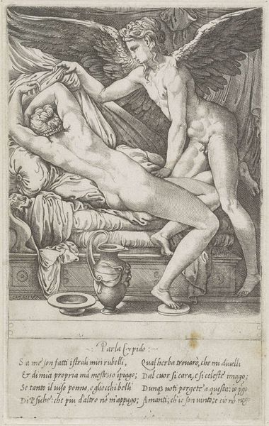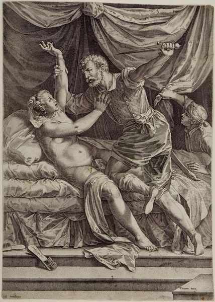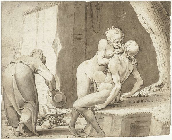 Editor: Here we have "The Mourning of Pallas," a charcoal drawing by Anne-Louis Girodet, created around 1790 to 1793. It’s overwhelmingly… neoclassical. I mean, just look at the figures! What strikes you about this piece, Professor? Curator: Formally, the careful use of chiaroscuro—the strong contrast between light and dark—immediately draws the eye. Note how Girodet uses the charcoal to sculpt the figures, emphasizing their musculature and the folds of their drapery, especially those mourning over the body of Pallas. Observe also the background relief and how that contributes to the symbolic density within a restricted tonal register. How does the frieze function structurally in the overall design? Editor: It seems to establish depth, maybe? And grounds the figures? The torch creates verticality which draws my eye up. I guess I’m just stuck on all the grief. It’s so…melodramatic. Curator: Consider the artist's engagement with line and form; with shape and value. Girodet wasn’t concerned with straightforward historical documentation, but with the construction of a particular aesthetic experience rooted in the ideals of Neoclassicism and his academic training. Consider, even the apparent emotion on display is very controlled; almost sculptural in its restraint. Would you not agree? Editor: I think I see what you mean. Even the gestures, while sorrowful, are very deliberate, almost posed. The figures really do feel more like sculptures. I was stuck on the feelings but not considering *how* they are constructed. Curator: Exactly! It is through this very construction that Girodet conveys meaning, highlighting form, balance, and the aesthetic ideals of his time, so we are guided in our interpretation. Editor: That’s fascinating! I’ll definitely look at art with more attention to the formal qualities moving forward.