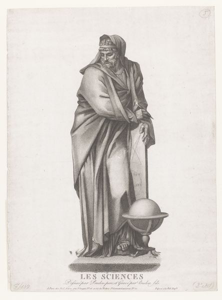 Cornelis Visscher created this print of Saint Willebrord sometime between 1628 and 1658. The composition is dominated by the imposing figure of the saint, rendered in detailed strokes that give a palpable sense of texture to his ornate robes and facial features. Consider how Visscher uses the interplay of light and shadow to direct our gaze. The saint's face, illuminated and turned upwards, creates a focal point that contrasts with the darker, more elaborately patterned areas of his garments. The halo, constructed from linear rays, does not merely denote divinity, but also functions as a structural element that draws the eye upwards, reinforcing the verticality of the composition. The linearity of the engraving technique, with its emphasis on line and form, echoes the period's broader artistic concerns with clarity and order. It is a masterful example of how the formal properties of a work can embody the intellectual and spiritual values of its time.
