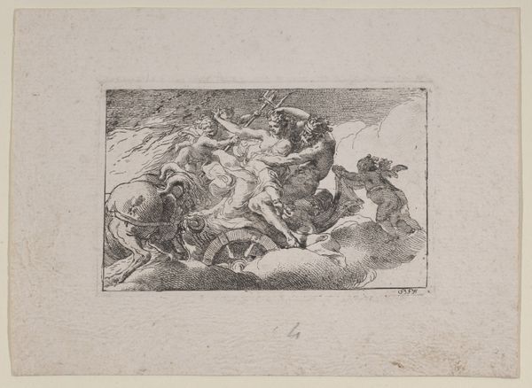 This anonymous wood engraving reproduces a tapestry depicting the wedding of Bacchus and Ariadne. Works like these circulated widely, shaping visual culture and social norms. Focusing on classical mythology, this tapestry reflects the cultural elite's interest in stories of gods and heroes. Bacchus, the god of wine and ecstasy, embodies indulgence and liberation, while Ariadne, abandoned by Theseus, represents female vulnerability and resilience. The wedding celebrates their union, reinforcing patriarchal ideals and gender roles within marriage. I wonder about the contrast between the elite's enjoyment of these stories and the realities of gender and power in everyday life. How did those outside the privileged classes interpret images of divine love and marriage? This tapestry, reproduced in print, invites us to consider the complex relationship between art, representation, and lived experiences.