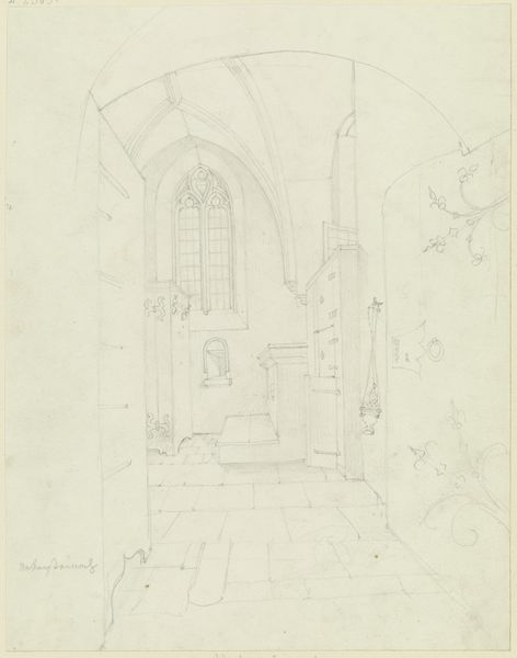Peter Becker created this pencil drawing, "Young Knight in the Pose of Saint Michael Before a Gatehouse," in 19th-century Germany. It depicts a young man dressed as a knight, in the guise of Saint Michael, standing before the arched entrance of a medieval gatehouse. The artwork evokes a sense of historical romanticism, a cultural phenomenon popular at the time. The rediscovery of the Middle Ages appealed to German nationalism and its artistic imagination. Becker's work engages with the visual codes of heroism and religious symbolism, referencing the figure of Saint Michael, a protector against evil. The choice of a young knight may allude to the ideals of chivalry and moral purity. The setting, with its gothic architectural elements, reinforces this nostalgic vision of the past. Art historians might delve into the archives of art academies and exhibition records to discover the social networks that supported Becker's work and understand how he was promoted as an artist.
