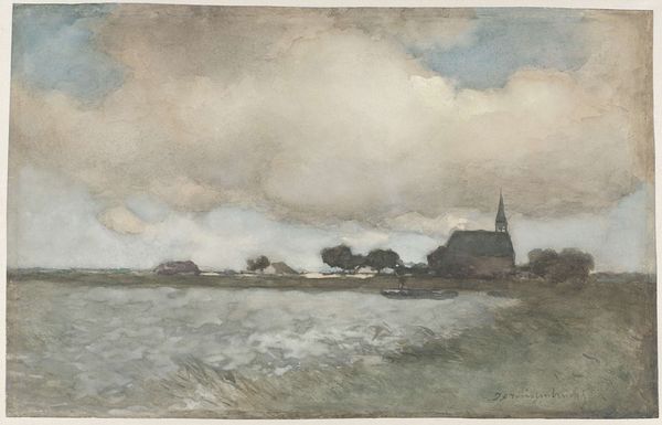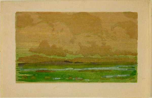 Piet Mondrian made this watercolor landscape, now hanging at the Musée d'Orsay in Paris, with delicate washes of pigment. It’s all about touch, really, you can see him feeling his way across the paper. The paint is thin, almost transparent, allowing the paper's texture to peek through. Look closely, and you'll notice subtle variations in tone; in the way the grey of the sky meets the green of the banks of the river. Mondrian's brushstrokes are barely there, like he’s coaxing the image into existence rather than forcing it. The painting feels tentative, like a fleeting moment captured in time. It reminds me of Fairfield Porter, or maybe even some of those early Turners, all about capturing the feeling of a place. It's a quiet piece, but it speaks volumes about the artist's evolving vision, a testament to the fact that art is not about perfection but about the process of seeing and feeling.