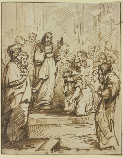 This drawing, "Holy Family in an Interior," presents us with a tableau rich in Christian symbolism. Dominating the scene is the cross, a stark premonition of Christ's sacrifice, while the Christ Child clutches what appears to be a set of nails, instruments of the Passion. Consider how the image of the cross transcends its immediate religious context, reappearing as a potent symbol of suffering and redemption across cultures. From ancient sun wheels to modern-day emblems, the cross evokes deep-seated emotions. Here, the Holy Family is framed by this symbol, suggesting both divine protection and looming fate. This is not merely a scene of domesticity; it’s a stage where humanity's drama of sin and redemption is about to unfold. The emotional resonance of this image lies in its subtle tension, engaging viewers on a subconscious level. The cyclical progression of sacrifice and rebirth is deeply embedded in our collective memory.