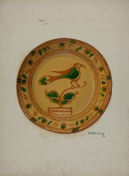 This plate was designed by William L. Antrim, active in the late 19th and early 20th centuries. The central motif is the bird perched amongst stylized foliage. Since antiquity, birds have served as potent symbols, often representing the soul's journey or divine messengers. The dove, specifically, carries layers of meaning across cultures, from symbolizing peace and purity in Christian iconography to representing love and devotion in ancient mythology. Notice how the plant behind the bird is reaching upwards, almost like a tree of life. The motifs are not just decorative but seem to be reaching for something beyond their earthly, material reality. Consider how these symbols resonate through time. In ancient Greece, doves were associated with Aphrodite, the goddess of love, while in the biblical story of Noah, the dove signals the end of the flood, marking a new beginning for humanity. Here, these forms take on a life of their own, speaking to a shared, perhaps subconscious, understanding of life, death, and rebirth. The cyclical progression and resurfacing of this symbol remind us of art's ability to echo and evolve through history.