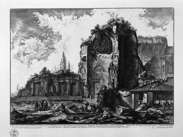 Giovanni Battista Piranesi created this etching entitled 'View the remains of Mausoleums and tombs scattered factories on the Appian Way, five miles from the Porta S. Sebastiano’. Piranesi was deeply influenced by the shifting cultural and political landscapes of 18th-century Europe. His works often reflect a fascination with the grandeur of ancient Rome, juxtaposed against its contemporary state of decay. The etching captures a scene along the Appian Way, where fragments of mausoleums and tombs stand amidst factories. The small figures scattered among the ruins emphasize the passage of time and the transience of human achievement. Piranesi masterfully uses light and shadow to create a sense of drama, evoking a melancholic contemplation of mortality and the relentless march of progress. Piranesi's Rome was not just a historical site; it was a stage upon which themes of power, memory, and decay played out. This etching invites us to consider our relationship with the past and the legacies we leave behind.