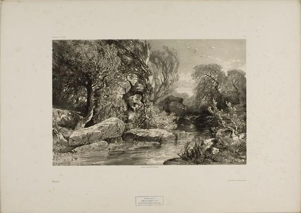 Editor: Alexandre Calame's "Landscape Number 17" presents a tranquil forest scene. The monochromatic palette evokes a sense of stillness. What's the historical context that shapes our understanding of this landscape? Curator: Calame's work aligns with a rising bourgeois interest in the natural world and the picturesque. His idealized landscapes, exhibited publicly, reinforced notions of national identity linked to the land. How do you see that playing out here? Editor: I can see how the romanticized depiction of the forest might evoke a sense of national pride, by associating beauty and tranquility with a specific place. Curator: Exactly. It's also worth considering how these images circulated – as prints, often – influencing public perceptions of these spaces. They weren't just art; they were tools of cultural construction. Editor: I never thought about landscape art as a tool of cultural construction. I'll definitely be looking at these kinds of works with new eyes now! Curator: Precisely! Art always exists within a broader framework of power and influence.