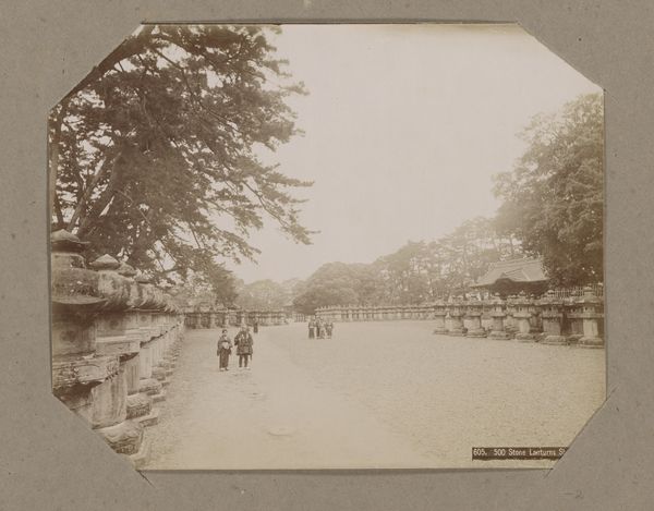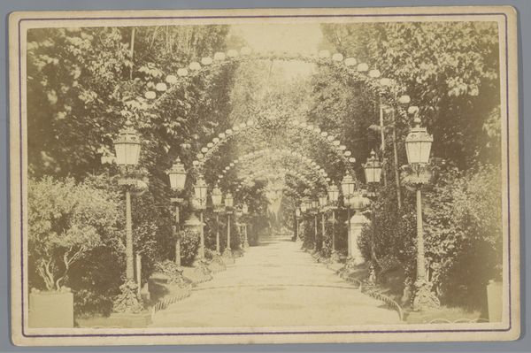 This small photograph captures a scene from the garden of Sanssouci Palace in Potsdam. The composition, rendered in sepia tones, guides the eye through layers of space, from the pond in the foreground to the palace facade enveloped by greenery in the background. The pond's circular form dominates the lower portion of the image, its surface acting as a mirror, reflecting the architectural and natural elements above. Above the pond a balustrade is punctuated by statues that provide a rhythmic visual structure. The palace, only partially visible, is veiled by climbing plants, adding a sense of depth. The formal arrangement here destabilizes a clear distinction between nature and artifice. The architectural lines of the palace are softened by the organic forms of the surrounding foliage, creating an interplay between the constructed and the natural world. Notice how the sepia tone unifies these elements, underscoring their complex interrelation. This photograph operates within an ongoing discourse about how we perceive and organize our surroundings.
