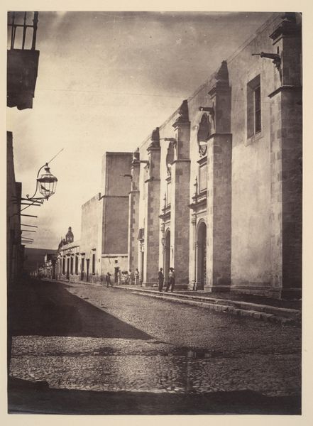 Editor: We're looking at Luigi Pesce's "Peacock's Throne Room, Teheran," a daguerreotype from 1858. It's incredible to think about seeing this in person! The light in this old photograph is so striking, but almost eerie at the same time, especially on those draped fabrics. How do you interpret this work, placing it in the context of the time it was made? Curator: This photograph offers a crucial glimpse into 19th-century Iran, a period marked by Western influence and internal power struggles. Pesce, an outsider, captures not just architecture but a stage upon which ideas of sovereignty and cultural exchange played out. The Peacock Throne itself is a symbol of power, but the daguerreotype process—a Western technology—raises questions about representation, appropriation, and who controls the narrative. Consider how the stark clarity of the photograph might contrast with the opulence suggested by the title. Do you notice any details that hint at social or political dynamics? Editor: That's a really insightful point. I see the formality in the building’s structure itself and the curtains as staging. The drapes are heavy and ornate, clearly suggesting immense wealth and control, while still being a photograph that flattens some of that richness out. Curator: Exactly. It becomes a study in contrasts. What does it mean to capture this seat of power with a technology rooted in a different cultural and political context? It forces us to consider the power dynamics inherent in image-making itself. Also, by viewing it from our modern perspective, we are seeing an altered representation from over a century ago. It changes the meaning once more. Editor: I hadn't thought about it that way. So, by analyzing these dynamics, the artwork can communicate a rich cultural and historical narrative of the complex historical and societal dynamics present in its making. It shows how perspective shifts over time as well. Curator: Precisely. By dissecting the image, its origins, and its context, we expose the intricate layers of history, power, and representation embedded within this seemingly straightforward architectural study. We give the art a renewed life.