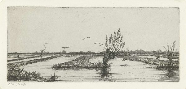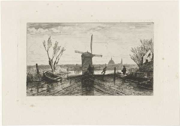 This landscape was etched by Johannes Tavenraat, a Dutch artist who lived in the 19th century. Etching is an printmaking process where a metal plate, usually copper or zinc, is coated with a waxy, acid-resistant substance. The artist then scratches an image into the wax, exposing the metal. When the plate is dipped in acid, the exposed lines are eaten away, creating recessed lines. The plate is then inked, and the surface wiped clean, leaving ink only in the etched lines. When paper is pressed against the plate, the image is transferred, resulting in a print with fine, detailed lines, as you can see here. This technique allowed artists to reproduce their work, making it more accessible and contributing to the growth of a market for art. The etching process itself requires skill and precision, but also enables a certain efficiency, making art production more compatible with emerging industrial models. In the 1800s, artists like Tavenraat found new ways of engaging with both craft and commerce.