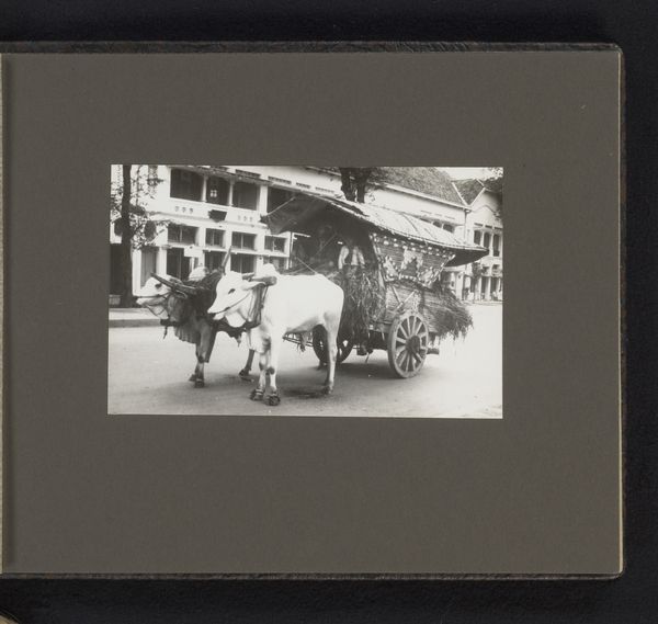Giorgio Sommer created this albumen print, titled "Dog cart on the street in Lucerne, Switzerland." Here, dogs are not merely companions but laborers, a motif echoing back to ancient times. We see them harnessed, burdened, pulling a cart—a poignant contrast to the pampered pets of today. This invokes the Roman canis servus, the working dog, diligently performing tasks. Consider the loyal dogs of ancient Egypt, not only guarding but assisting in hunts. The psychological weight of this image is substantial, reminding us of a time when animals were seamlessly integrated into the workforce, their strength and loyalty harnessed for human benefit. It’s a cycle of dependence and labor, a visual echo resonating through centuries. The presence of the fountain hints at water, a crucial element for both humans and animals, marking a place of rest and sustenance. We see the fountain, a source of life-giving water, as an ever-flowing symbol of survival. This image is not just a snapshot of a moment but a link in an unbroken chain, highlighting how roles and relationships shift through time.