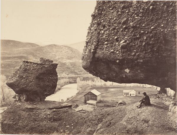 Curator: Edward Sheriff Curtis created this photograph, "Home of the Havasupai." Editor: It feels so serene. The smoky sepia tones really evoke a sense of timelessness and connection to the earth. Curator: Curtis aimed to document what he saw as a vanishing way of life, often romanticizing Indigenous cultures. Editor: Yes, the dwelling nestled against the cliff face, the blossoming trees... these are potent symbols of shelter and renewal. The smoke rising is reminiscent of the spirit. Curator: Exactly, though we must consider the power dynamics at play. Curtis was an outsider shaping the narrative. How much did his framing of the Havasupai people affect cultural perception? Editor: An important point. Perhaps it captures a constructed memory more than reality? Still, the image's enduring power lies in how it visualizes home and belonging. Curator: It is a reminder of how visual narratives are built, often reflecting the gaze of the observer. Editor: And how we continue to interpret and re-evaluate the cultural significance embedded in these images.