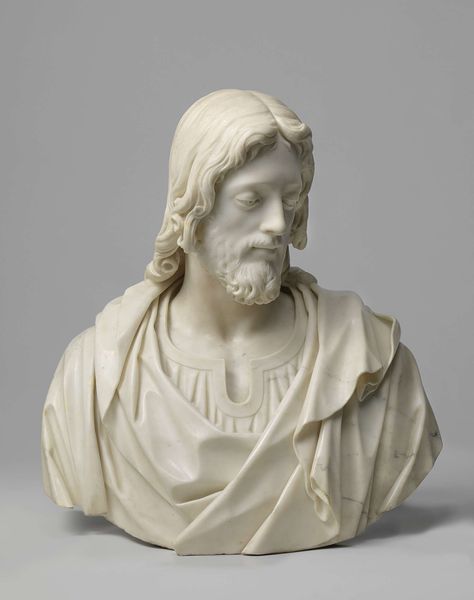 Editor: So this is a marble sculpture from the Southern Netherlands, depicting Christ. It dates back to somewhere between 1450 and 1470. It feels… surprisingly human, and not overly idealized like some religious art I've seen. How do you interpret the piece, especially given its historical context? Curator: I see this sculpture deeply embedded within the socio-political and religious climate of the late medieval period. Notice how Christ is holding what appears to be a globe, or orb. What do you think that represents? Editor: Well, based on my initial survey, it feels like symbolic power over the earth? Curator: Precisely. This iconography appeared when Europe's exploration and domination across the world was starting. How the Church wanted to be seen— and see itself—as holding divine dominion over everything. But let’s also look at where this was placed. Was it intended for a grand cathedral, easily accessible to the masses, or a private chapel? That context would further inform our understanding. If the latter, it speaks to the evolving relationship between individual devotion and organized religion. Editor: That's a good point. Thinking about the setting really does change my perspective. Curator: The politics of imagery are never neutral. By carefully situating the work, we unravel these complex layers of power and belief. The placement influences how a contemporary audience engages with it, and how the sculptor and his audience constructed meaning at the time. Editor: I guess that gives me a new appreciation of museums: to provide these pieces context so we can really discuss their history. Thank you for sharing your insights. Curator: Absolutely. Considering how cultural forces shaped the artwork helps us connect to both the artwork itself and to that long-ago historical world.