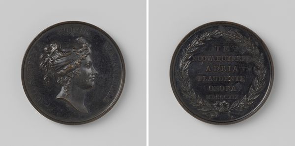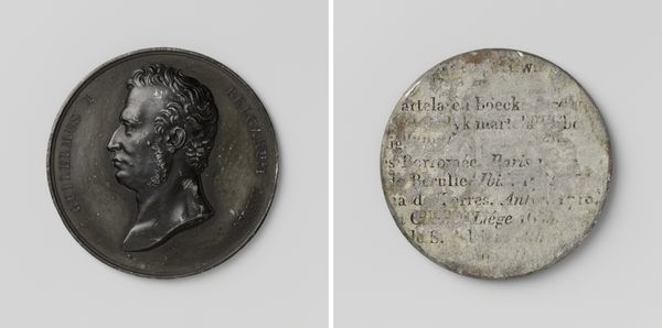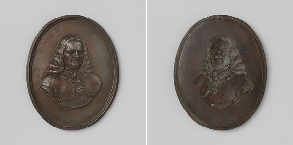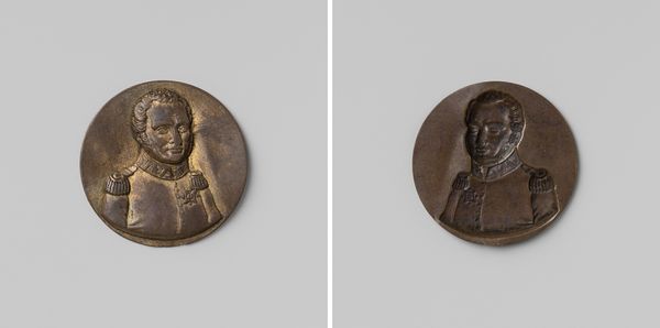 This un-dated medallion at the Rijksmuseum commemorates the marriage of Frederik, Prince of the Netherlands, and Louise, Princess of Prussia. The anonymous artist likely employed a technique called ‘Medallic Art’. This is similar to creating coins, involving the careful modeling of forms in wax or clay, which were then cast in metal. The choice of a dark metal gives the piece a somber, almost severe quality, fitting for a royal portrait. The raised profiles, precisely rendered, allow light to play across the surfaces, accentuating the details of their features and attire. What's interesting is the decision to create two separate medallions, almost like a ‘before and after’ snapshot of the royal union. Medals like these functioned as propaganda, cementing the status of those portrayed. But they also reflect skilled labor, from the initial design to the final casting and finishing. By considering the materials and making of this artwork, we can appreciate its place in both the history of craft and the theater of royal life.