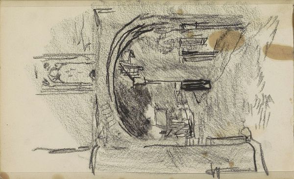 Bela Czobel's 'Czóbel Béla Hatvani Kastélyban' is a charcoal drawing of a rural scene. Its immediate impact arises from the artist’s expressive use of line and form. The sketch is rendered in stark blacks and grays, accentuating the raw texture and tactile quality of the medium. Notice how Czobel uses a dense network of lines to define shapes and create a sense of depth. The composition, while seemingly straightforward, employs a subtle distortion of perspective. The objects – a horse-drawn cart, a figure, and a building – are rendered with a dynamic interplay of light and shadow. The charcoal strokes build up volume, giving weight to the figures and objects while simultaneously dissolving their boundaries. Czobel’s handling of form is evocative, blurring the line between representation and abstraction. Through a language of marks and gestures, Czobel captures the essence of a moment, inviting viewers to consider the artwork not just as a depiction, but as an exploration of the medium itself. The drawing serves as a powerful testament to the expressive potential inherent in the most fundamental elements of art.