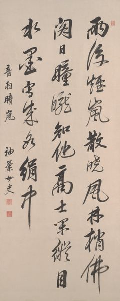Hirano Gogaku created this artwork of calligraphy during the 19th century in Japan, using ink on paper. The symbols aren't just letters; they're vessels carrying centuries of philosophical and aesthetic meaning. The characters, rendered in bold, fluid strokes, speak of ancient virtues, and the pursuit of knowledge. Notice how the characters are carefully placed to evoke harmony and balance. Consider the recurring theme of the Tao, or the Way, in East Asian thought, and the visual echoes of similar motifs across diverse cultures. The calligraphic strokes, in their dance of ink and space, mirror the rhythms of nature itself. The symbols aren't static; they evolve, shaped by cultural memory and subconscious desires. The emotional resonance lies in the calligrapher's ability to channel deep emotional states into the act of creation. These symbols persist, resurface, and adapt in different historical contexts, connecting us to a timeless realm of human experience.
