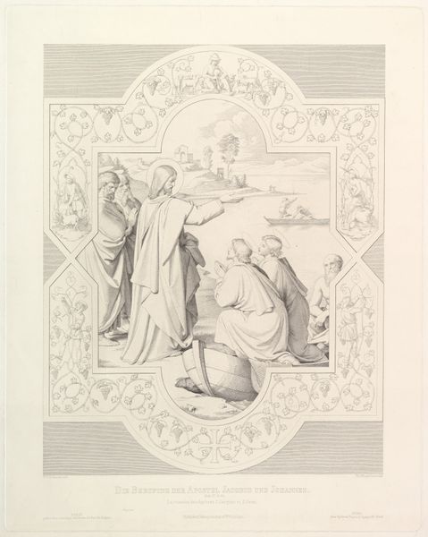 Editor: This woodcut, "Hagbard og Signe" by Axel Theodor Kittendorff, created in 1852, tells such a striking narrative. The figures are so detailed and the stark black and white gives it a dramatic flair. What stands out to you about it? Curator: The technique immediately grabs my attention. The use of woodcut reflects a particular mode of artistic production tied to reproducibility and accessibility. Consider the labor involved in carving the block, each line meticulously placed. How does this process, rooted in craft, challenge notions of "high art" typically associated with Romanticism? Editor: That's fascinating. I hadn’t thought about the labor involved. I was just focused on the story it seems to tell. Curator: And what about the narrative elements, particularly when viewed through the lens of social context? We see scenes depicting sacrifice and potential defiance. How do these depictions relate to the power structures and social norms of the mid-19th century in Denmark? Is it possible to view the fiery Signe as an allusion to some other social conflict happening? Editor: It could be, maybe hinting at unrest. I am also wondering about the role of the paper itself, the ground for this image. Does the choice of paper, its quality or availability, influence the reception and circulation of the artwork? Curator: Absolutely. The materiality extends to its consumption, right? Consider who had access to prints like these, how they were distributed, and what their function might have been beyond mere aesthetic pleasure. Understanding the production, materials, and social life of this print offers insight into its historical significance, beyond just the story. Editor: I see, by looking at the material and its context, we get a much broader picture of its importance. Thank you. Curator: And it highlights how deeply connected artistic creation is to the socio-economic conditions of its time. It's been enlightening to unpack it together.