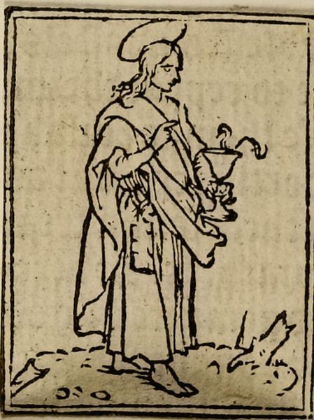 Curator: Looking at "Illustration XXII," an anonymous piece housed at the Harvard Art Museums, I am immediately struck by the weight of history this image seems to carry. Editor: He looks so weary, doesn't he? Like he's seen ages come and go. The etching is so stark, the lines like wrinkles mapping a long life. Curator: The figure's staff, with its orb-like top, suggests authority, maybe even wisdom, and the bell on the chair hints at a call to attention, or perhaps a warning. It's a potent mix of symbols. Editor: Yes, a call to wisdom, but also, perhaps, a mournful toll. The cloak is so heavy, almost crushing him. I wonder what he's guarding or grieving. Curator: Indeed. It’s fascinating how an image, even one so simple, can echo with such layered meanings. Editor: I'll carry this somber sage with me.