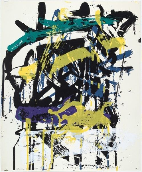 This untitled painting was made by Joan Mitchell, we're not sure when, and I find it so compelling because it's all about how colors play together on the canvas, like a visual symphony. The way Mitchell uses these colors is so physical. The paint is applied with a real sense of energy. Look at the big dark blue shape in the upper right – it's like a gravity well, pulling your eye in, but it's also surrounded by these explosive bursts of color. The surface is alive, with drips and splatters that show the process of making, nothing is too precious. I'm reminded of Helen Frankenthaler, another painter who wasn't afraid to let the paint do its thing. These works are not just about color, but about the sheer joy and messiness of painting.