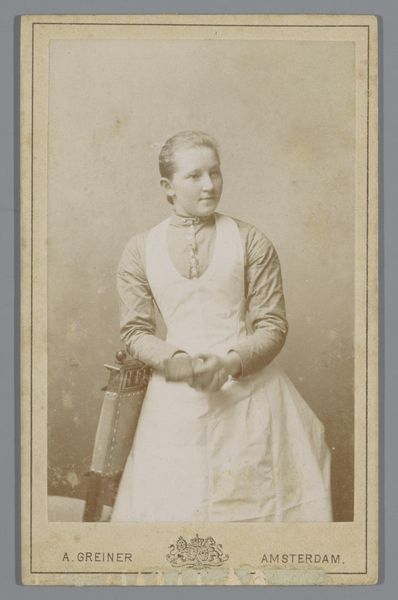 This photograph of an unknown young woman, likely a maid, was taken by Roelof Pieters Lammers in the Netherlands, around the turn of the twentieth century. It's a modest image, but it speaks volumes about the social hierarchies of the time. Consider the visual codes at play. The woman's simple attire, including her apron and cap, immediately signal her social standing as a domestic worker. During this period, the Netherlands was undergoing rapid industrialization and urbanization, leading to a growing divide between the wealthy bourgeoisie and the working class. Photography studios, like Lammers', began to cater to a broader clientele, including those who sought to emulate the conventions of bourgeois portraiture. Further research into the socio-economic conditions of Dutch society, alongside archival material such as census records and employment statistics, can provide additional insight into this fascinating image and its reflection of the social structures of its time.