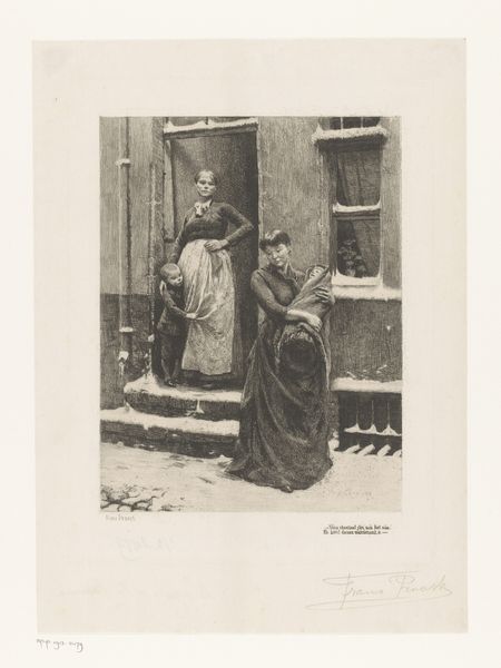 Editor: This is “Bedelend Meisje,” or “Begging Girl,” an engraving from somewhere between 1826 and 1886 by Dirk Jurriaan Sluyter, currently residing at the Rijksmuseum. The scene is stark, filled with social tension and economic disparity. What narratives do you see embedded within this print? Curator: I see a powerful commentary on social inequality. This engraving, appearing during a period of rapid industrialization and urbanization, depicts a stark contrast between the haves and have-nots. The "Begging Girl" isn't just a sentimental image; it's a document reflecting the social stratification and exploitation of labor prevalent during the 19th century. Notice how the children are positioned. One is leaning out the window, apparently cared for and supported. The other, in tattered clothing, reaching out hopefully. Editor: It’s almost theatrical, the way they’re staged. Like a tableau vivant meant to provoke a reaction. Curator: Precisely. This carefully constructed image encourages viewers to confront uncomfortable realities: child poverty, lack of social safety nets, and the immense power imbalances shaping society. How do you think the contemporary viewer might have reacted? What would have been their biases? Editor: Perhaps some viewers would feel pity and be moved to charity, while others might dismiss the girl as simply lazy or blame her family for their misfortunes. It makes me think about how even today, these very same debates around poverty and personal responsibility persist. Curator: Exactly! Sluyter's work forces us to confront the long, unbroken chain of societal problems and prejudices that affect so many lives. It begs the question: What responsibility do we, as a society, bear in addressing the needs of its most vulnerable members? Editor: This engraving is not just a picture of the past but also a mirror reflecting our present. Thank you for drawing those links for me. Curator: It's in grappling with these visual echoes of the past that we can begin to forge a more equitable future.
