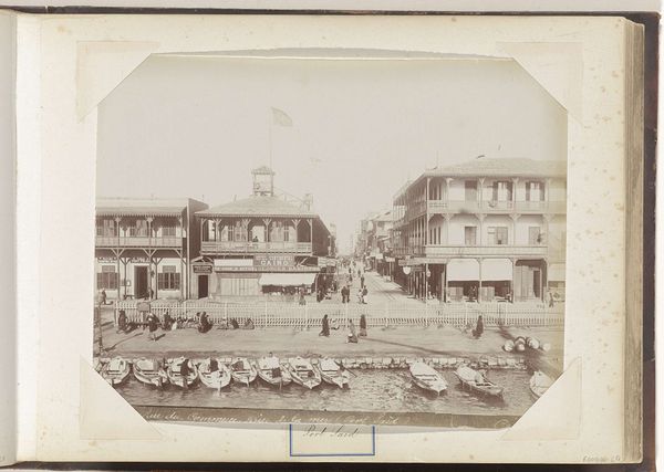 Curator: This photogravure print, taken by Dimitri Ivanovitch Ermakov around 1890-1900, depicts Plein in Tiflis, now Tbilisi, Georgia, featuring the statue of Mikhail Semyonovich Vorontsov. Editor: It’s fascinating how a simple street corner can feel so weighted with history, so... solid. Like a stage set waiting for a play that's already been written. The dust, the architecture—it’s all sepia-toned theatre. Curator: Observe how the photographic method emphasizes a structured view. The statue is centrally placed, and there’s an assertive use of orthogonal lines in the square. Ermakov meticulously captures the architectural details and uses light to define the forms. This gives us not just an image but an essay on spatial organization. Editor: I am arrested by the chainlink around the statue. It's strangely contemporary in its functional directness, given the age. I can imagine people sitting around it talking and smoking cigarettes as time ambles by. It gives me a nostalgic ache for a place I've never seen. Curator: That sensation is not misplaced. Ermakov's artistic intentions are complex. He provides ethnographic document alongside formal portraiture—giving dignity through the photographic record but maintaining objective distance, not unlike an orientalist scholar carefully cataloging knowledge. Editor: The photograph invites us to see Tbilisi as more than a place. It suggests a story—of Russian influence in Georgia, yes, but also of lives lived amidst empires and monuments. The light kissing the statue contrasts with shadows that invite mystery. Makes me want to know those stories. Curator: Agreed. It encapsulates the tensions within the city between tradition and modernization, empire and independence through pure composition. The receding road and meticulously depicted details creates a narrative, drawing the viewer into considerations of space and identity. Editor: It does invite a curious form of reflective wandering—imagining sounds and lives swirling in that space a century or more ago, as history stood still for a single, beautiful moment, caught by Ermakov’s lens.