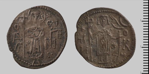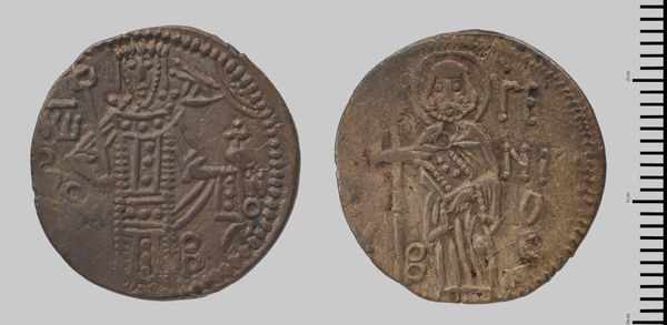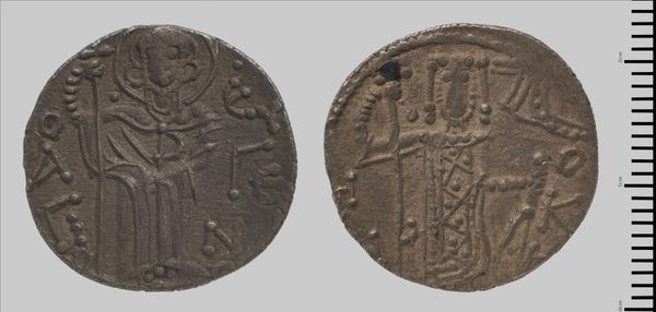 Editor: Here we have the Asper of Manuel I of Trebizond. Its diminutive size is quite striking. What can you tell us about the historical context of such a coin? Curator: These coins weren't just currency; they were powerful tools of visual propaganda. How do you think this imagery projected Manuel I's authority? Editor: I guess having his image on the coin gave him a kind of omnipresence. Curator: Exactly! Circulating these images throughout the empire reinforced his legitimacy and power, shaping public perception and solidifying his rule. I find it quite fascinating how a simple object like this can be so revealing about the politics of the time. Editor: I had never thought of it that way! This has really changed my view on art's role.