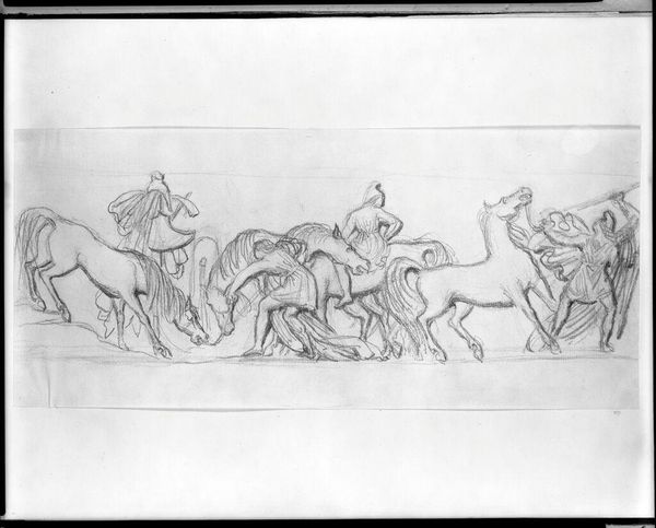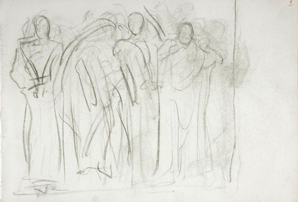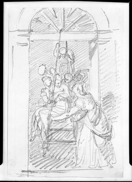 Curator: Blondel's "Homer in Athens," held here at the Harvard Art Museums, strikes me as an ode to artistic legacy, the delicate lines breathing life into the scene of Homer receiving honors. Editor: It reminds me of instructional drawings, with its precise lines that make it appear like a template for a sculpture. Curator: Exactly! It’s as if Blondel wanted to illustrate not just the scene, but the very process of immortalizing it in stone or bronze. The making of art, visualized. Editor: I agree. But how do we reconcile this with the classical subject matter? Is this about manufacturing history? Curator: Perhaps it’s about the labor involved in creating a myth—the conscious construction of artistic immortality. Editor: Precisely. It's a fascinating study of legacy through the lens of production. Curator: And that adds a layer of depth, doesn't it? It makes you wonder about the artists and artisans behind the celebrated names, the unacknowledged labor that shapes our understanding of history.