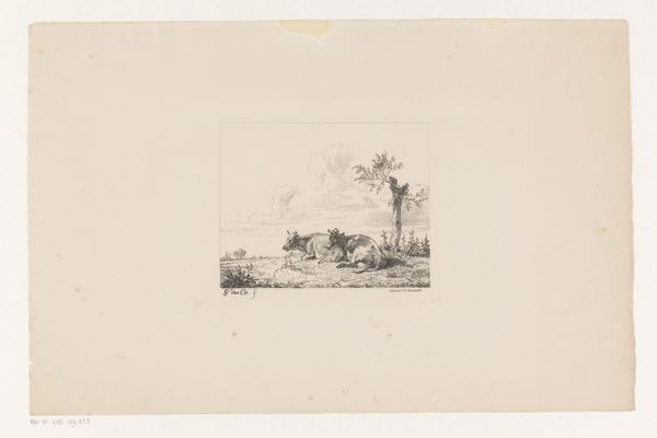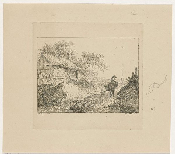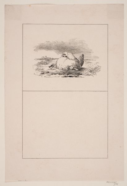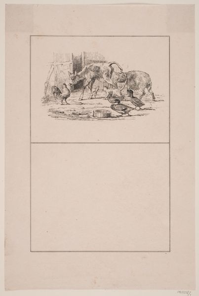 Editor: So, this is "Hanen," a lithograph from 1845 by Adolph Kittendorff. It looks like a simple drawing of chickens. What do you see in this piece, especially considering its materials? Curator: I find it interesting that Kittendorff chose lithography, traditionally used for mass production, to depict such a seemingly ordinary, rustic scene. Lithography enabled the circulation of this image, and we might ask: who was consuming it, and why? Was it a commentary on rural life, a nostalgic look at agricultural production for an increasingly urban audience? Editor: That’s an interesting point. I hadn’t considered the implications of the print medium itself. Does the landscape style also contribute to the commentary on rural life? Curator: Precisely. The 'landscape' here isn't grand or sublime; it's a barnyard scene. What kind of labor does this imply? Think about the unseen labor required to create both the image—from sketching to printing—and the agricultural labor it depicts, or perhaps romanticizes. The very accessibility of this print makes one ponder about its place within 19th century consumer culture and social stratification. Editor: So it's less about the chickens themselves, and more about the broader system of production and consumption they represent? Curator: Yes. The humble subject matter, replicated and circulated through the mechanics of lithography, opens a dialogue on class, labor, and the changing relationship between urban and rural life. By focusing on the means of its making, the artwork unveils a rich, layered narrative. Editor: This really changes my perspective. I was just looking at a drawing of chickens! Curator: Exactly! Shifting our gaze to the artwork's materiality gives voice to silent laborers, to those involved in the process, be they in the field or printshop. Editor: Thanks, I’ll definitely be considering the 'how' as well as the 'what' in the future!