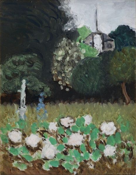 Curator: The Harvard Art Museums hold this lovely oil on canvas, “Cabbages,” by Joseph Smith. It measures about 33 by 78 centimeters. What’s your first impression? Editor: Immediately, I see a quiet, almost secretive space. The cabbages are rendered with such subtle color variations that they feel like hidden treasures. Curator: It’s interesting how Smith elevates something so ordinary. Cabbages aren't exactly classical subjects, yet they become almost monumental here, don't they? Editor: Yes, there’s a subtle symbolism, too. The cabbage, often associated with sustenance and growth, hints at life’s cyclical nature. They're like visual metaphors. Curator: Absolutely, and the loose brushwork and soft palette contribute to a dreamlike atmosphere. One can almost feel the moist earth and the gentle sun on the leaves. Editor: The painting does evoke a sense of nostalgia, doesn't it? It reminds us of the simple beauty found in nature's bounty, so often overlooked. Curator: Indeed, a serene meditation on the everyday.
