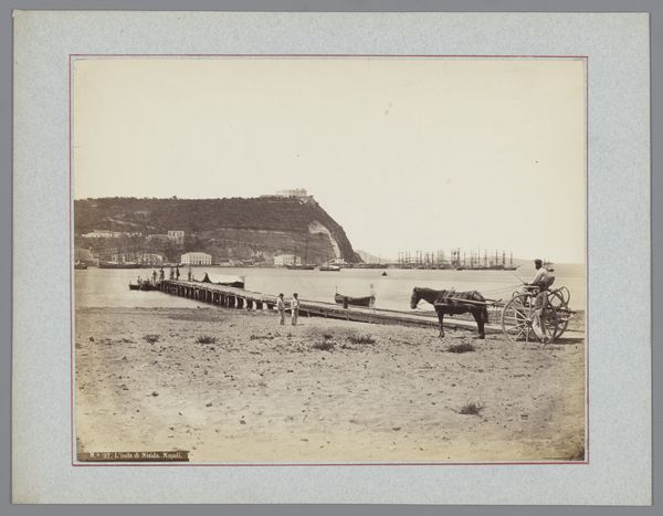 Editor: This photograph, taken by A. Kaulfuss between 1891 and 1894, is titled 'Militairen bij brug over de Kroeng Tjoet bij Lamjong' - it looks like a gelatin silver print. I’m struck by the starkness of the scene, this line of soldiers stretching across the bridge. How do you interpret the visual power of this piece? Curator: This photograph is not merely a depiction, it's a document embedded in the complicated history of Dutch colonialism. We see not just a landscape, but the visual assertion of military presence in what was then the Dutch East Indies. What purpose did these photographs serve, do you think, beyond simply recording a moment? Editor: Perhaps to project an image of order and control back to the Netherlands? Curator: Precisely! And who was this image meant to impress? Not just the general public back home, but potential investors, colonial administrators, and even the local population being 'managed.' It's a very constructed image, wouldn't you agree, from the composition of the bridge, symbolizing connection, to the soldiers who project an imposing image. How does the relationship between the natural environment and the military personnel impact its message? Editor: The somewhat subdued landscape acts as a backdrop, almost like the military presence is inevitable, part of the natural order...which is clearly a political statement. The lack of engagement or interaction emphasizes the detached and administrative aspects of colonialism, instead of military violence or exploitation. Curator: An astute observation. These early photographs weren't passive mirrors reflecting reality; they were active participants in shaping perceptions and legitimizing power. Considering the power of the medium itself helps to unravel these complex political undertones. Editor: I hadn't considered photography itself as an active agent! It really changes how I view historical images. Curator: Exactly! Paying attention to how museums or political institutions utilize these mediums for certain agendas sheds new light to history.