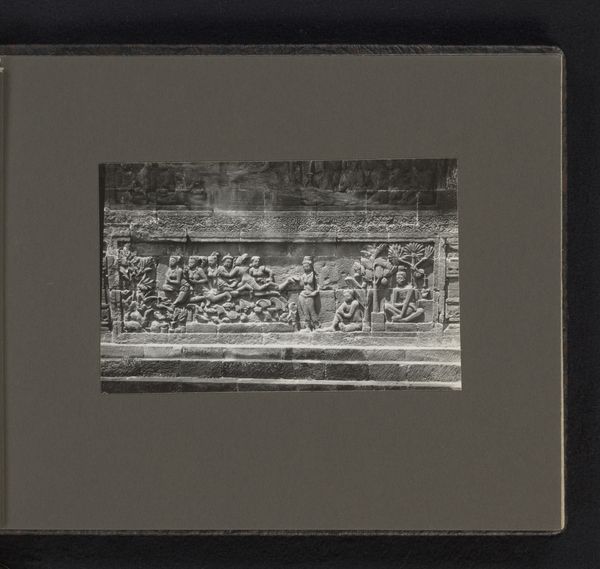 This photograph captures reliefs from Borobudur, a work by C. Dietrich. The image presents a complex interplay of horizontal tiers densely populated with figures. Notice how Dietrich frames the stone carvings to emphasize their layered composition. The upper tier shows seated figures in meditative poses, creating a frieze-like effect. The lower tiers are filled with narrative scenes, their depth emphasized by the play of light and shadow that defines individual forms. The photograph serves as a signifier, an index of a culture’s complex spiritual and narrative traditions. Consider how Dietrich’s photographic lens not only documents but also interprets these carvings. By manipulating light and shadow, the artist directs our gaze, inviting us to consider the structures of power and knowledge embedded within the stone. It transforms three-dimensional space into a flattened, mediated image. Ultimately, the photograph functions as a cultural artifact, inviting us to question how the medium shapes our understanding of history and belief.