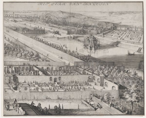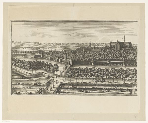This detailed view of the Capuchin monastery in Tervuren was created by an anonymous artist using etching. The printmaking process required considerable skill and labor, from preparing the metal plate to applying the acid that bites the design into the surface. We can see how the etched lines influence the overall appearance, defining the forms and textures of the buildings, gardens, and distant landscape. The precise, repetitive strokes give a sense of order and control, mirroring the monastic life within. But the choice of printmaking also speaks to wider social issues. Inexpensive and reproducible, prints like these circulated widely, bringing images of religious institutions to a broad audience. The act of making this artwork is therefore intrinsically tied to the social, political and religious context of its time.