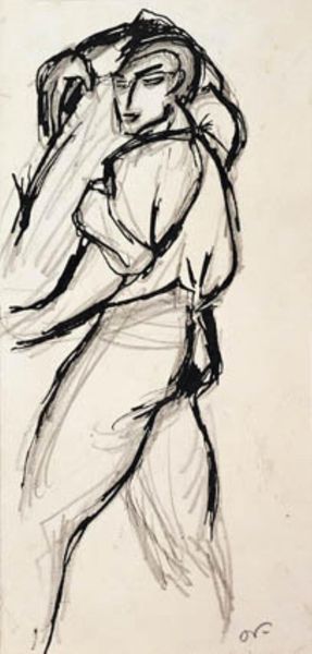 This untitled drawing was made by Zdzislaw Beksinski in 1990. The artist uses line here in such a way, such freedom and darkness, that the figure emerges as something spectral, or perhaps the memory of something lost or never known. Look at how the ink is applied with such directness, as though the artist is searching for the figure within the act of making the marks itself. See that knot of lines that forms the figure's head and shoulders? I love how they coalesce from the frantic scribble into a solid mass, a dark halo or aura. And then how this gives way again to the thin, scratchy, almost tentative lines that form the legs. This reminds me of some of the work of Goya, particularly his etchings, in the way it finds beauty and power in the grotesque. It's as though Beksinski is saying that even in the darkest corners of our imagination, there is something to be discovered, something to be understood.