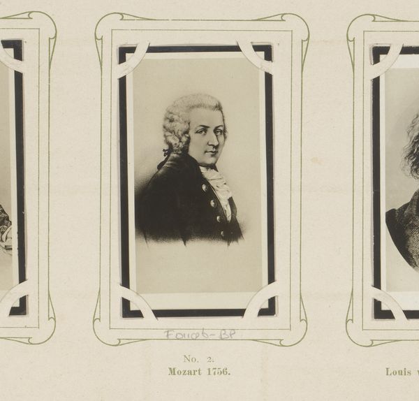 Curator: Look at this striking image. It's a photo reproduction of a painted portrait of Robert Schumann, dating from around 1904-1905. What do you think? Editor: It feels very restrained, almost melancholic. The tight framing, the monochrome palette, it all contributes to a sense of quiet intensity. His gaze is directed slightly off to the side, a classic romantic pose. Curator: Indeed. Schumann, of course, was a pivotal figure in the Romantic movement, so it makes sense the original artist wanted to convey that feeling. As a photographic reproduction created decades later, this speaks volumes about Schumann’s posthumous cultural weight. Editor: And look at the technique; this is a gelatin-silver print. That materiality places it firmly in a moment of technological transition, almost like a nostalgic echo of a bygone era being preserved in a new medium. Photography trying to capture painting…it’s quite interesting. Curator: Absolutely. Photography at this time held an interesting tension with painting. But to me, it suggests how cultural memory operates. Here, Schumann is elevated and celebrated as a timeless icon, a testament to how powerful cultural imagery can be in shaping lasting impressions. Editor: That's a compelling point. This image really emphasizes how visual media contributes to shaping an artist’s reception and, ultimately, their place in history. Schumann’s tragic life probably only adds to the romantic appeal conveyed by this print. Curator: Well, I think seeing how past portrayals gain new lives really lets you think about the staying power of romantic art! Editor: Exactly. Thinking of this image, maybe it’s worth trying to listen to a couple of his songs as we walk to the next display…