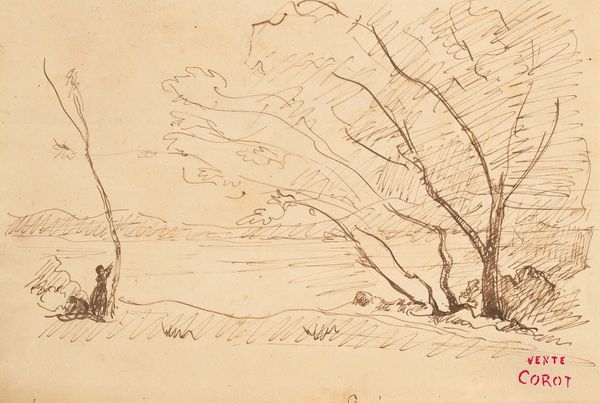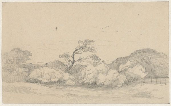 Editor: So, here we have "Bomen aan een waterkant", or "Trees by the Waterside," by Arnoldus Johannes Eymer, likely created between 1803 and 1818, using graphite and pencil on paper. It's interesting how sketchy and unfinished it feels; you can almost feel the artist capturing a fleeting moment. What stands out to you in this piece? Curator: What strikes me is how this seemingly simple sketch embodies the rising Romantic sensibilities of its time. Consider the period – the late 18th and early 19th centuries – Europe was experiencing dramatic social and political upheaval, leading to a profound interest in nature as a source of solace and spiritual connection. Do you see how Eymer focuses on the wildness, almost a sublime indifference, of nature rather than an idealized pastoral scene? Editor: Yes, the sketchiness does add to that wild, untouched feel. Curator: Precisely. And this depiction also highlights a shift in art's patronage and function. While previous eras often saw art primarily commissioned by the church or aristocracy, Romanticism aligned with the rise of a new, bourgeois public. Art became a tool for personal and emotional expression. Think of this work not just as a drawing of trees, but an emotional statement made by and intended for the consumption of free people in society. Editor: That makes sense. The directness of the medium, pencil on paper, feels almost democratic compared to oil paintings commissioned by wealthy patrons. Curator: Exactly. The choice of such immediate and portable materials allowed artists like Eymer to engage with nature directly and quickly. This approachability extended to the audience too, fostering a connection with nature and art accessible to a wider public. In what ways could museums like ours either help or hurt this effort? Editor: I see your point. By showcasing works like this, we amplify the artist's voice and reach, giving him an audience to contemplate nature; it can be very inspirational for emerging artists like myself, yet on the other hand, taking a raw work out of context also creates some distance, in the sense of not being able to experience the real-world setting for myself. Curator: A valid point! I believe analyzing its socio-historical context makes us re-evaluate its purpose today.