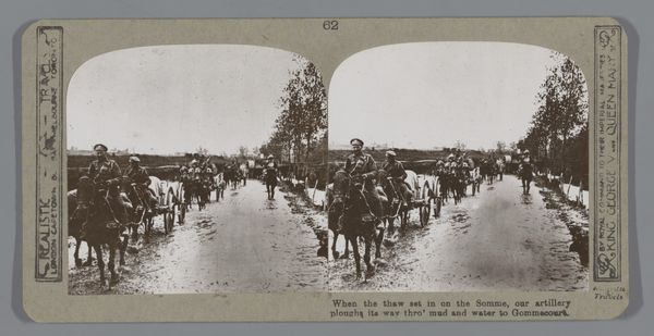 This staged photograph, by Underwood & Underwood, presents the Inniskilling Dragoons, a British cavalry regiment, en route to Modder River in South Africa. It’s crucial to remember that this image was taken during the Second Boer War, a conflict marked by British imperial ambition and the brutal subjugation of the Boer people. The photograph serves as propaganda, glorifying military might and masking the war’s human cost, and the suffering inflicted upon the South African population. What does it mean to witness a scene staged for consumption, knowing the complex political landscape it represents? Underwood & Underwood were known for their mass-produced stereoscopic images, intended for middle-class consumption. Consider how this image, designed for entertainment, normalizes and even romanticizes colonial violence, reinforcing notions of British superiority and the dehumanization of the ‘other’. Ultimately, this photograph invites us to reflect on the power of images in shaping public opinion and justifying historical injustices, while reminding us of the personal stories obscured by grand narratives of war and empire.