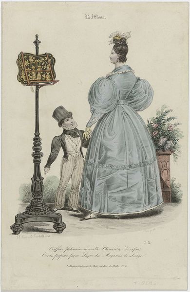 J. Bonnard’s “Moniteur des Dames et Demoiselles, ca. 1863, No. 727” is a print that captures the cultural aesthetics and social values of the Second Empire in France. Fashion magazines like this one reflect the intricate and often contradictory roles women played in the 19th century society. While the elaborate dresses suggest wealth, leisure, and a focus on beauty, they also reveal constraints. The clothing that defined feminine identity restricted women's mobility. The dresses embody the era’s emphasis on visual appearance as a marker of social status. The magazine’s title, "Monitor of Ladies and Young Women," underscores its purpose: to guide women in adhering to fashionable ideals. Here, fashion becomes a tool for reinforcing social hierarchies and gender roles. The image, with its detailed rendering of textiles, speaks to a burgeoning consumer culture, where fashion was increasingly accessible. These magazines shaped desires and reinforced a gendered experience of modernity. Fashion, as depicted in the artwork, served as both a creative outlet and a tool for societal control.