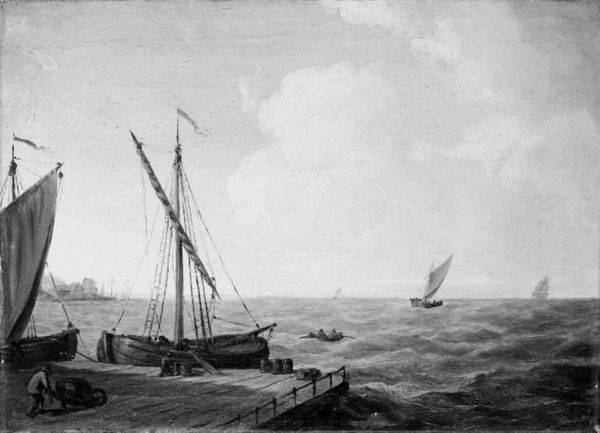 Pavel Petrovich Svinin captured this vivid scene of New York Harbor with watercolor and graphite on paper. The artwork is dominated by a ship, sails billowing, slicing through turbulent waters. The monochromatic palette enhances the dramatic interplay between light and shadow, evoking a sense of maritime power. The composition cleverly balances the formidable presence of the ship against the horizon line and clouded sky. This creates a dynamic tension. The ship, angled diagonally, seems to challenge the static nature of the horizon, suggesting movement and perhaps even a confrontation with the sublime forces of nature. Svinin's choice to focus on the ship's interaction with its environment speaks to broader themes of exploration and the relationship between humanity and the natural world. He prompts us to consider the ship not merely as a vessel, but as a signifier of cultural ambition, economic exchange, and the ceaseless quest for new horizons. It stands as a testament to the enduring power of interpretation in art.
