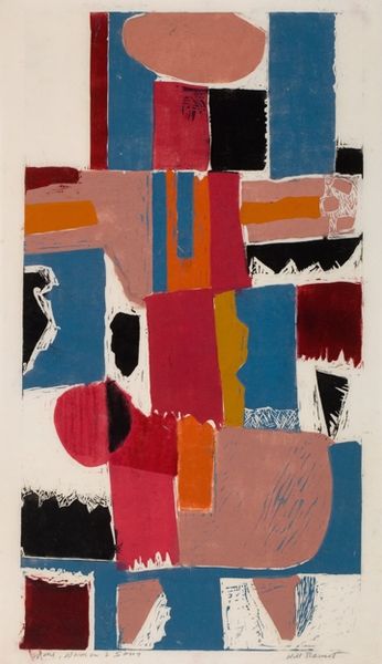 Sean Scully made this watercolor, Mexico MELAQUE, on paper in 1983. The watercolor has a clear structure of horizontal and vertical bars in a limited palette of colors, and it feels like an exercise in pure process. It's got these juicy rectangles stacked on top of each other. Scully is working with the materiality of watercolor, letting the colors bleed and blend, especially in the green and yellow sections. Look at the imperfections in the brushstrokes, the way the colors pool and settle. This feels very human, very much about the hand. Even though there are a lot of straight lines, the piece manages to feel imperfect, even a little wonky. The red and yellow stripes give it a warm, earthy vibe. The red is a bit translucent, letting the white of the paper peek through. It reminds me a bit of Agnes Martin's grids, but with more body, more… attitude. It's like Scully is saying, "Yeah, I can do minimal, but I'm gonna make it messy and real." Art is a conversation, right? Scully's definitely chiming in.