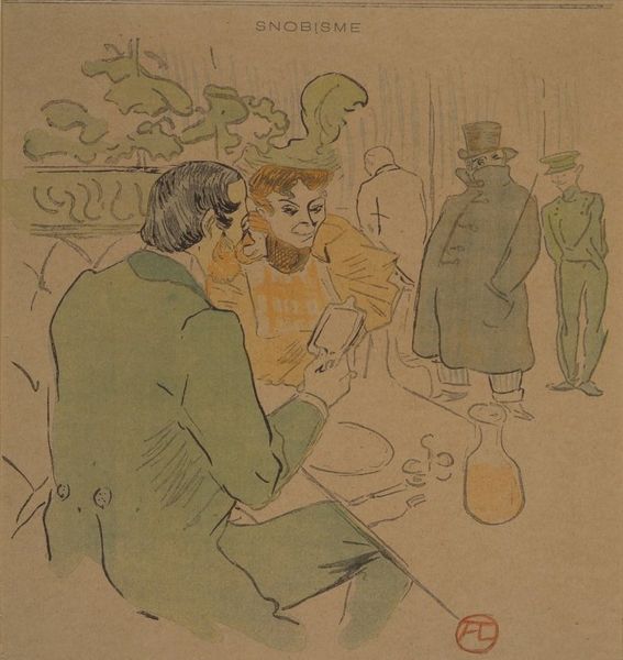 This color lithograph by Thomas Theodor Heine is from a portfolio of satirical prints entitled “Thorheiten,” which translates to “Follies.” Lithography involves drawing on a stone or metal plate with a greasy crayon, then using ink to print the image. The process allows for fine lines and subtle gradations, evident in the intricate details of the figures and the background. Heine masterfully uses the graphic medium to expose social and political tensions. The contrast between the opulence of the palace in the background and the abject poverty of the kneeling figures is stark. The crisp lines and flat planes of color emphasize the rigid social hierarchy and the power dynamics at play. The print's impact relies on its sharp critique of authority and class disparity. By using the lithographic process to create such a pointed commentary, Heine elevates what might be considered a form of commercial printing to a powerful form of social critique. It serves as a potent reminder of the relationship between art, labor, and politics.