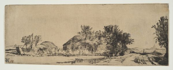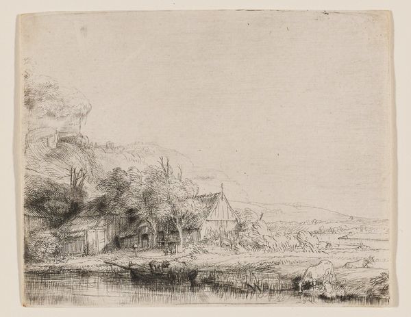 Rembrandt van Rijn created this etching, Landscape with a Cow Drinking, in the Dutch Republic during the 17th century, a period known as the Dutch Golden Age. Rembrandt was an acute observer of Dutch society, and his landscapes often reflect the intricate relationship between the people and the land. In this image, the cow, a symbol of rural life and agricultural wealth, takes center stage. The buildings are modest and sturdy, which might reflect the values of hard work and self-reliance prominent in Dutch culture at the time. Note the landscape's flatness, which evokes the geographical realities of the Netherlands and its ongoing battle against the sea. This kind of apparently 'simple' scene is loaded with information for the social historian. Contemporary land surveys, tax records, and even literature could further illuminate the economic and cultural significance of such a seemingly mundane rural scene in the 17th-century Netherlands.