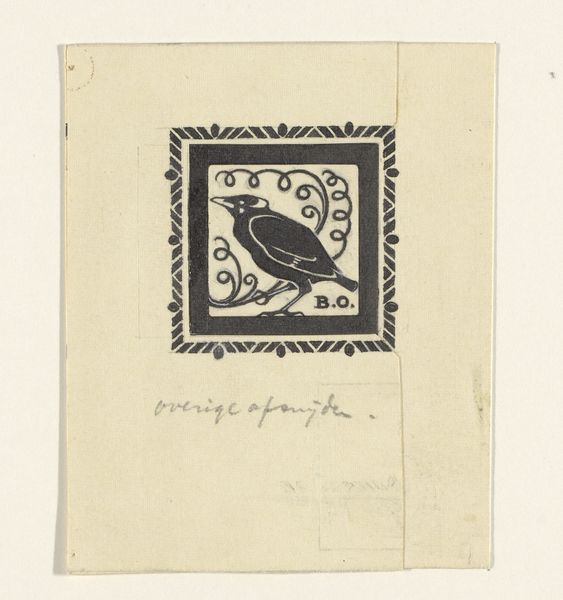 Editor: Here we have François de Maleck’s “Vogel op een boomtak,” or “Bird on a Branch,” an etching created sometime between 1800 and 1884. The limited palette makes me focus on the lines themselves; it almost looks like the bird is sketched from memory, giving it an ephemeral quality. What stands out to you when you look at this print? Curator: Note the strategic use of the circular form. This compositional choice directs our gaze inwards, magnifying the textural contrast between the rough strokes defining the bird and the relatively blank space it occupies. De Maleck also makes sure the contour line fades to emphasize the ethereal nature you noticed. Observe how the materiality, in particular, the incised lines of the etching, emphasize the contrast, suggesting a play of light. What do you think that contrast is doing formally? Editor: I hadn’t considered that. So, it's about more than just illustrating a bird; the composition itself is emphasizing the fleeting moment, using light and shadow and texture? It’s as if the very process of etching lends itself to this idea. Curator: Precisely! Consider the interplay of the contour, or implied contour, which delineates the bird, as if momentarily captured within the void of the circular form. It gives presence to this little figure, but only for as long as we view it, making this scene unique with each and every view. It appears and dissipates. Editor: That makes me appreciate the medium even more. What started as a simple sketch now feels rich with deeper meaning and thought. Curator: Indeed. The work, in its formal elements, provides more than the illustrative whole, shifting our perception from observation to analysis.