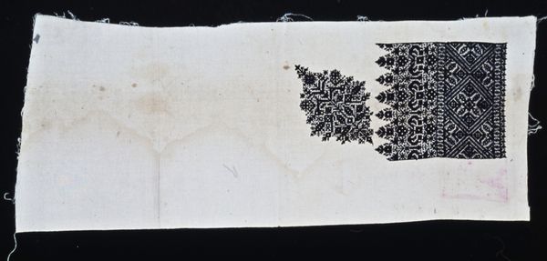 Curator: What a beautifully understated textile! This piece, known as "White Towel," dates from sometime in the 19th or early 20th century. It’s part of the decorative arts collection. The meticulous weaving shows the artist’s exquisite eye. Editor: I find it incredibly calming. The ivory tones and symmetrical patterns have a quiet elegance about them. It's quite modest overall. Curator: I appreciate your initial impression. Beyond its aesthetic qualities, I wonder what purpose it held. During this era, what was the role of women's domestic artistry in the private sphere? This towel represents an intersection of function, craftsmanship, and possibly female expression within prescribed boundaries. Editor: Certainly. Speaking strictly visually, the delicate, floral motifs arranged with such rigorous symmetry strike me as almost mathematical. It's this marriage of organic form and structured repetition that's so intriguing. Almost like a dance of chaos and order, no? Curator: The tension between order and the natural world is certainly palpable. Thinking about the societal implications, was creating such a decorative item an act of subtle defiance or self-expression, or simply an acceptance of domestic roles? The absence of a known maker only intensifies this question. Who spent hours crafting it? Under what circumstances? Editor: Without historical clues, the maker's intent stays beautifully ambiguous. We're left to focus solely on the object itself—the rhythm of the weaving, the considered spacing. Perhaps it's the sheer constraint that lends the piece such powerful visual interest, with a rigid frame filled with beautiful decorative lines and figures. Curator: I'm left thinking about how seemingly ordinary objects can carry significant meaning. This simple towel provides a potent window into women's lives, labor, and potential creative agency during a period marked by great gender disparity. Editor: And, perhaps, how enduring beauty can be found even within rigid confines. An artwork can transcend a utilitarian object—transforming domesticity into quiet yet lasting artwork.