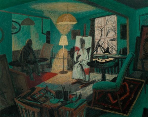 Iwo Zaniewski’s “Spring Ironing” is made with what looks like pastel, maybe chalk, on paper, and it captures a moment of domestic life. It’s not trying to trick you into thinking it's real, but it’s making you feel something real. I love how the marks are so present, almost like the air in the room made visible. The colors are muted, like a memory, but there’s a kind of vibrancy too, especially in the window, and the blossom on the sill. Look at the way the window frame divides the space, the outside pushing against the inside, the softness of the garden seen through the hard geometry of the glass. It’s all these contrasts that give the piece it’s tension, it’s feeling. Thinking of other artists, I'm reminded of Pierre Bonnard and his intimate, immersive domestic interiors. Like Bonnard, Zaniewski finds beauty in the everyday, elevates the mundane. It's a reminder that art doesn't always have to shout; sometimes, it whispers.